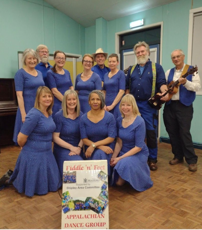 Fiddle ‘n’ Feet is an Appalachian dance team formed around 20 years ago and based in Shipley, West Yorkshire. Their style originates from the Appalachian Mountains of the United States, featuring tap shoes and board dancing. They are accompanied by musicians playing old-time and bluegrass tunes.