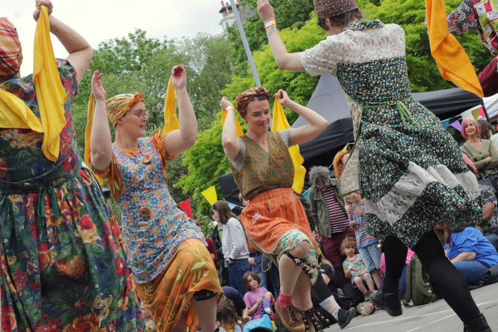 We are a women’s morris team based in Bolton, Lancashire dancing the North West style. Keen to maintain local dancing traditions we can be seen in carnival processions across the North West and at festivals and folk events around the country.