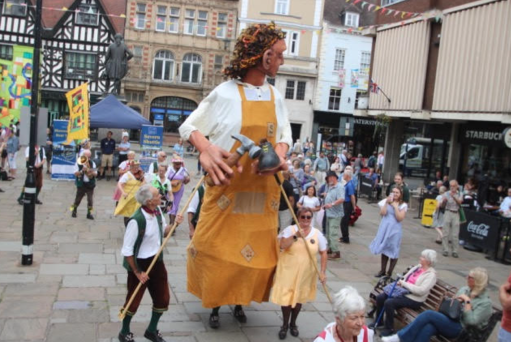Shrewsbury Morris performs a mix of traditional and self-penned dances and, in 2026, proudly celebrates fifty years of dancing. They are usually accompanied by Septimus the Giant Shrewsbury Cobbler. Together, they create a colourful spectacle, complete with waving flags and a lively band.